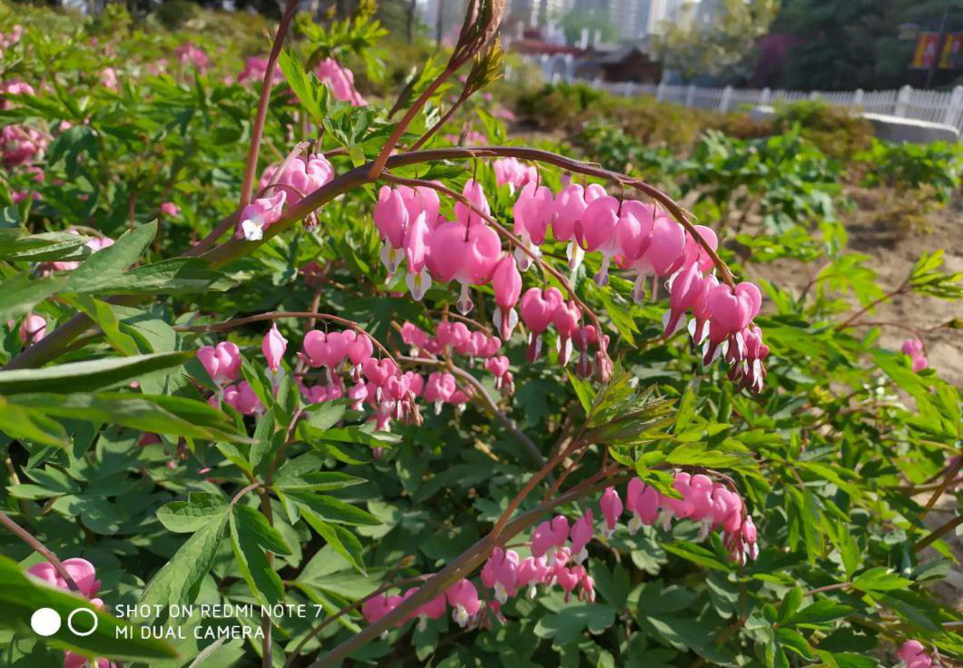 看,那满园的牡丹,五彩缤纷,争奇斗艳,犹如一幅连绵不断、精妙绝伦的五彩锦缎。观花的人们形成蜿蜒的人流在花间慢慢地漂移,饱览这国色天香。红的、紫的、白的这儿一丛,那儿一簇,有羞涩地打着朵儿的,有婀娜绽放的有文静地偎依在绿叶上的;有顽皮的在绿叶间捉迷藏的;有高傲的亭亭玉立的....阳光里,在或浓或淡的新绿的映衬下,像碧天里可爱的星星,轻风过处,那满园的牡丹泛着鲜亮的波纹,一波儿赶着一波儿,像友谊的电波传向远方;又像美丽的少女哼着欢乐的小曲翩然起舞。一群群勤劳的小蜜蜂、美丽的蝴蝶姑娘也趁明媚的春光赶来参加牡丹盛会....