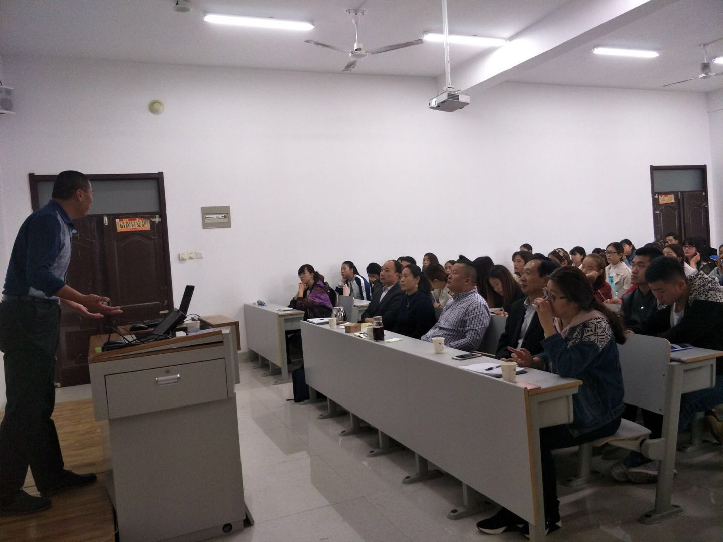 为了进一步提高学生专业的技能,以及为即将到来的导游资格证考试顺利通关做好准备,全体同学全力以赴,不忘初心,继续前行。在菏泽康辉旅行社点经理侯宪会和系领导宋书记、黄主任的协调统一安排下,我系15-17级旅游管理专业的全体学生于2017年10月17日上午9时参加了培训。本次培训特邀山东省著名导游培训专家谢方军导师莅临现场指导工作,参加此次培训课的有:拥有出境资质的康辉旅行社国旅总经理侯宪会、旅游系宋传祥书记、旅游系黄乐河主任以及任课老师尹娇娇老师等。