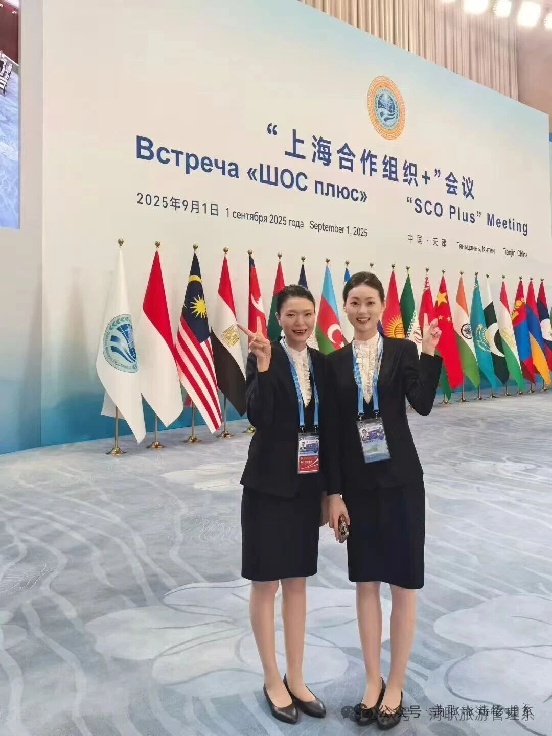在五名学子中,24届毕业生李婉婷、王雅琪凭借扎实表现,已成功在实习单位转正。二人将在校习得的专业知识与实习期间积累的实践经验深度融合,在重要峰会现场展现出成熟的职业素养:李婉婷以规范专业的礼仪完成嘉宾接待工作,细致周到的服务给外国友人留下深刻印象;王雅琪则凭借出色的沟通协调能力,全程负责活动服务保障,高效衔接各环节,为峰会各项议程的顺利推进提供了有力支撑。