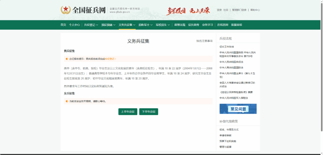出现以下界面后,点击“上半年应征或下半年应征”按钮,进行跳转;