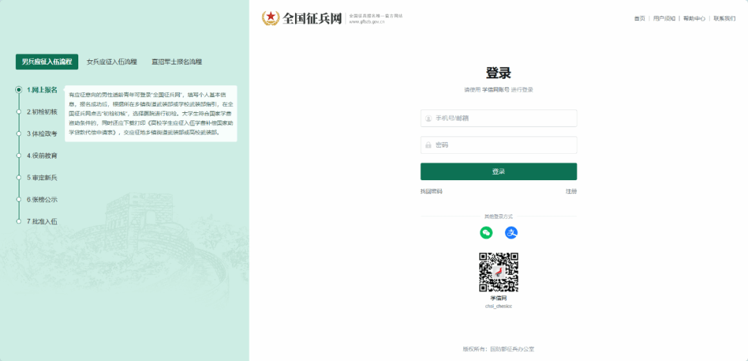 注意:注册学信网账号必须实名,一定要用真实姓名和身份证认真填写,兵役机关将对有效信息进行审核。