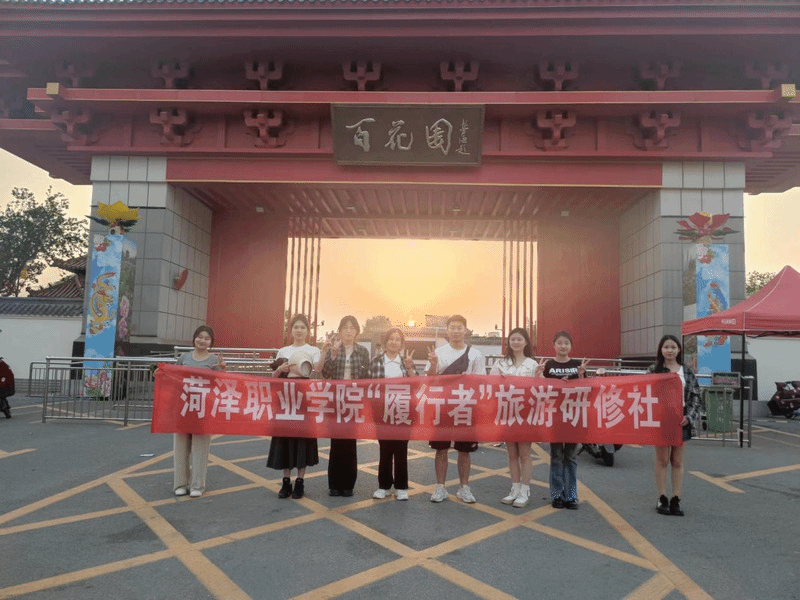 牡丹花映日,喜迎八方学子;绿树摇曳,共祝美好明天。旅游管理系欢迎你!