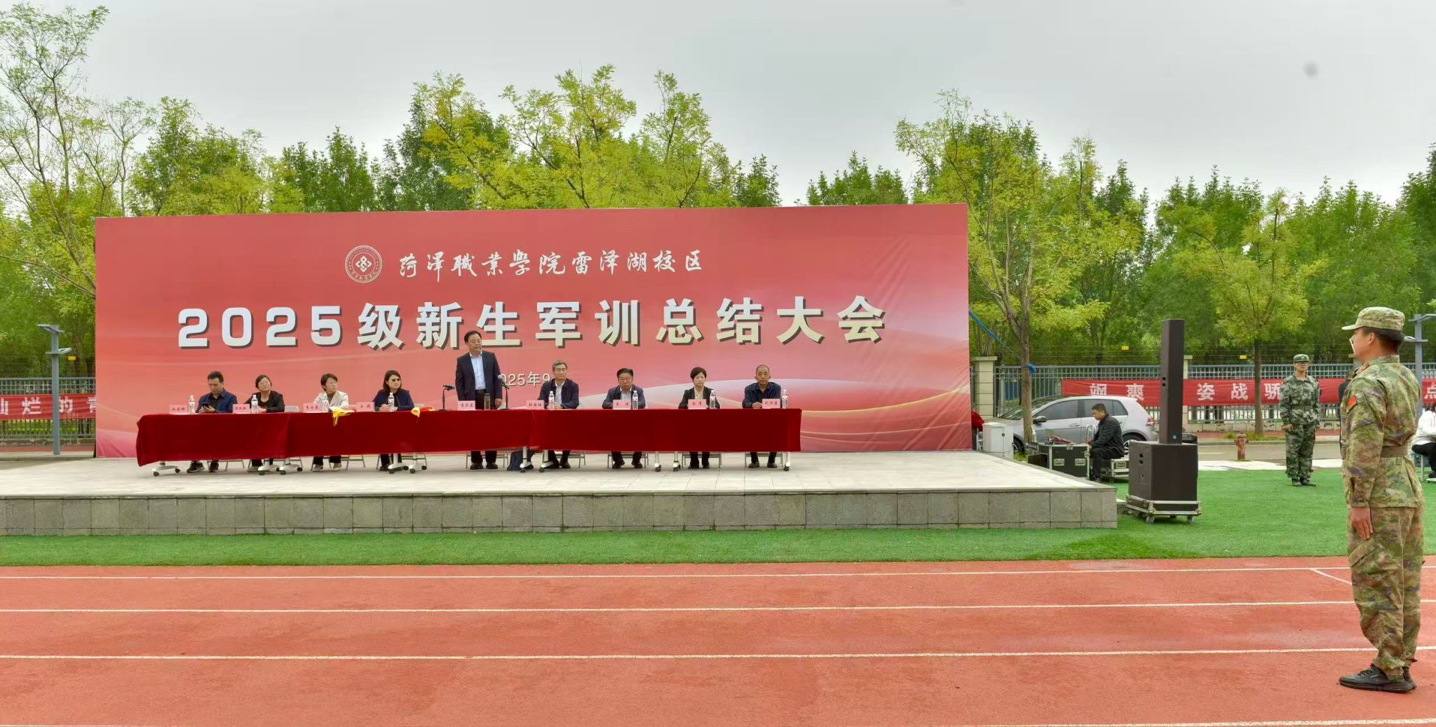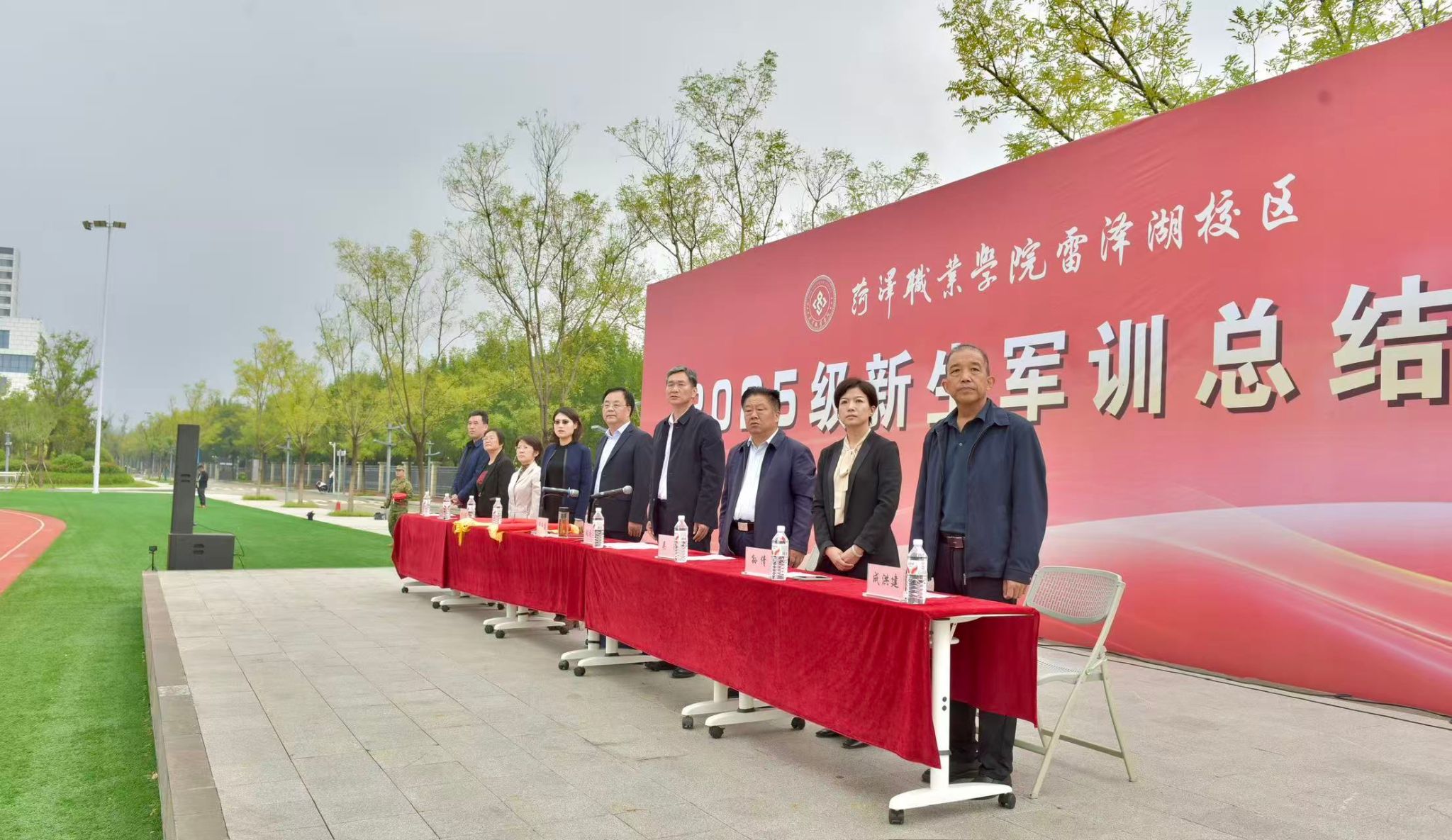 此次大会awc777万象城娱乐官网党委副书记、院长袁宗建,党委委员、副院长张国胜,党委委员、组织部部长王媛,雷泽湖校区管理办公室、学前教育系、建筑工程系主要负责人与全体军训教官、学工负责人、辅导员(班主任)一道,共同见证 2025 级新生的蜕变与成长,大会由党委委员、副院长张国胜主持,满溢青春朝气与奋进力量。