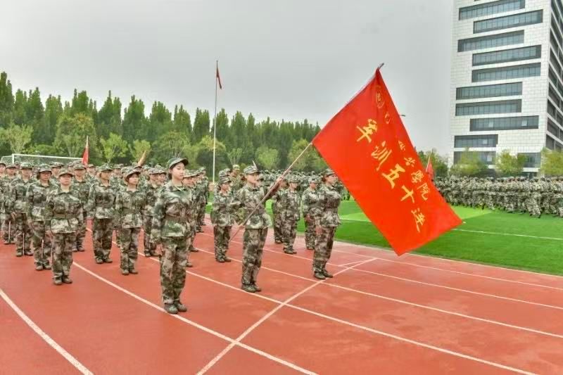 伴随着庄严的《义勇军进行曲》,五星红旗冉冉升起,全体师生肃立行注目礼,炽热的爱国情怀在广场上激荡。随后,军训汇报表演拉开帷幕。分列式中,新生方阵步伐铿锵、口号嘹亮,整齐的队列如钢铁洪流般向前推进,每一个转身、每一次摆臂都凝聚着数周的刻苦训练;匕首操与擒敌拳展示环节,同学们动作刚劲有力、气势如虹,眼神中闪烁着坚毅与果敢,将军人的飒爽英姿展现得淋漓尽致,赢得现场阵阵掌声。