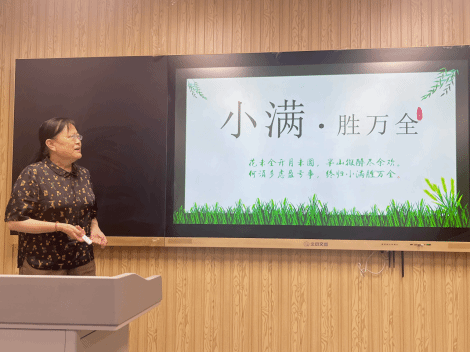 在讲解了节气起源、传统习俗、文化内涵后,张敏主任带领老师们深入哲思探讨究竟何为“小满”?“小满”不仅是节气,也是古人的人生态度。古人云:“四月中,小满者,物至于此小得盈满。”“小得盈满”,意指将熟未熟,发展上进有余地,“继长增高”仍可待。