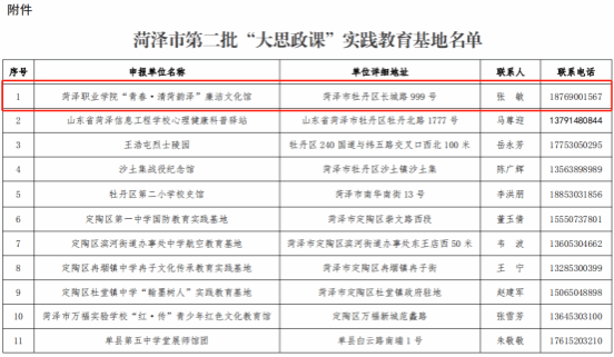 近日,中共菏泽市委教育工作委员会、菏泽市教育系统文学艺术联合会公布菏泽市第二批“大思政课”实践教育基地名单,awc777万象城娱乐官网“青春·清菏韵泽”廉洁文化馆成功入选。