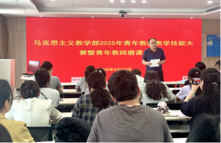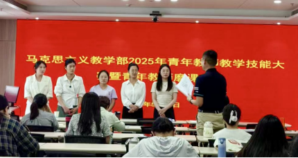 在教学比赛环节,马克思主义教学部11名优秀青年教师逐一进行10分钟微课教学展示。参赛教师紧扣时代脉搏,结合社会热点和学生实际需求,通过案例教学、小组探讨、情景模拟等多样化教学方法,深入浅出地阐释党的创新理论,以生动鲜活的教学语言,将社会主义核心价值观自然融入课程内容,有效引导学生在思想碰撞中深化理论认知,在情感共鸣中坚定理想信念,充分展现了青年教师扎实的理论功底和创新的教学智慧。