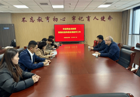 11月21日下午,山东大学周金龙教授莅临万象城官网深入调研并指导思想政治理论课教学工作。学校党委副书记李玉如、马克思主义教学部相关负责人、思政课教师代表及学生代表共同参加了此次活动。
