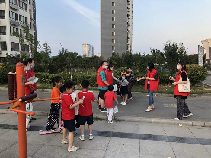 此外学生志愿者们也积极向党员教师靠拢,投身社区宣传工作,学习志愿服务精神,贡献青春的力量。