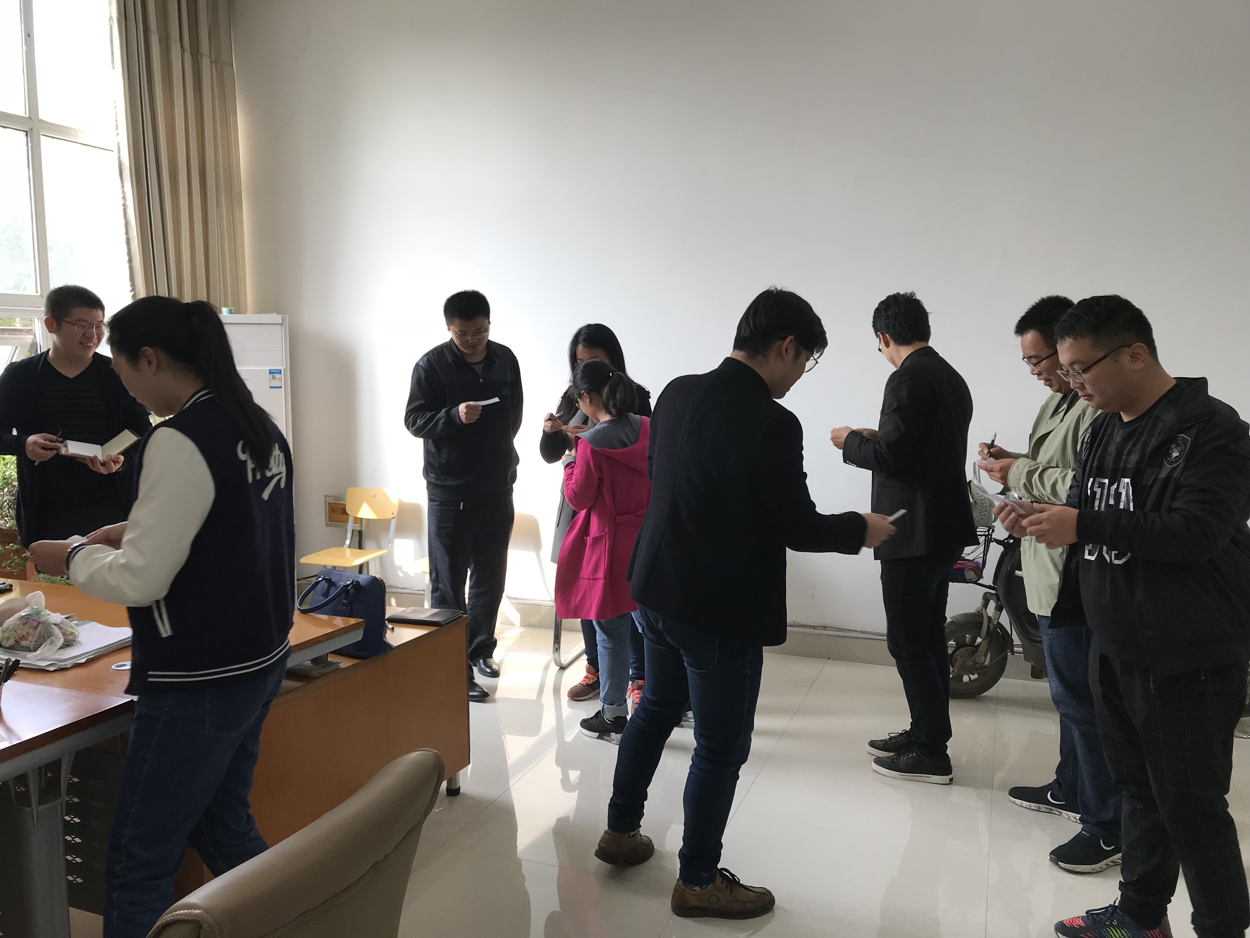 2017年10月21日上午全体班主任老师在系主任办公室评选优秀辅导员。从众位班主任老师中投票推选出优秀辅导员候选人有16级电子商务四班班主任程凤敏老师、16级物流一二班班主任邵伟老师、16级电子商务二班班主任王迪老师。