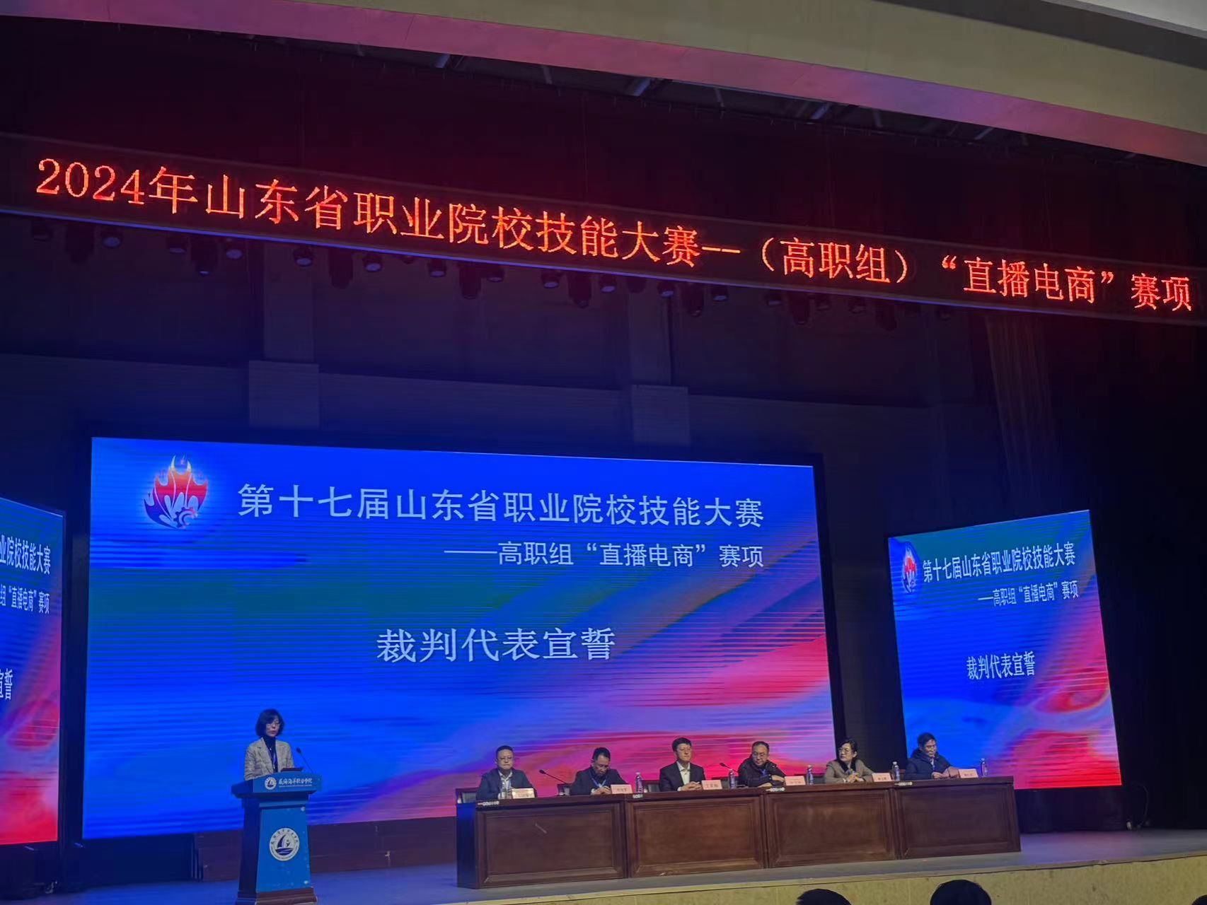 本赛项是由省教育厅、省工业和信息化厅、省人力资源和社会保障厅、省农业农村厅主办的山东省职业院校技能大赛,来自全省的62支优秀代表队参赛。“直播电商”赛项为团体赛,每队由4名选手组成,面向三个典型职业工作任务,即直播策划、直播运营、直播复盘,包括直播商品管理、直播内容策划、直播推广策划、直播间装修、直播销售、直播互动,直播数据分析与优化等工作内容,全面考察参赛选手的直播销售能力、直播运营能力和数据分析能力、沟通表达能力和团队协作能力。比赛中,万象城官网参赛师生以饱满的精神状态向奖牌发起冲击,展示了良好的精神风貌。