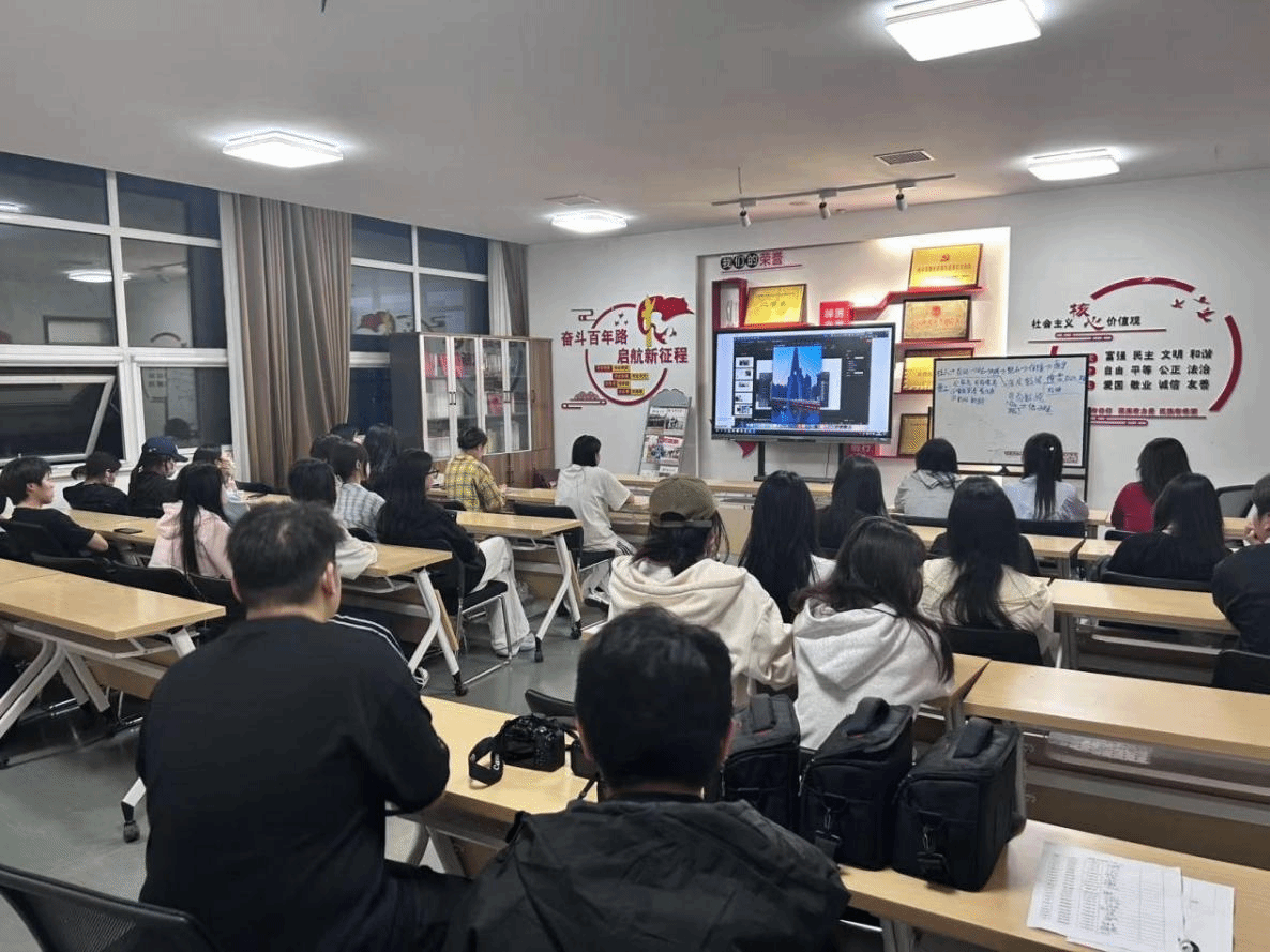 4月22日,图形图像处理社团于8号楼102教室举办“镜纳天地 影绘青春”摄影讲座,讲座邀请南京广播电视集团资深纪录片导演、摄影师孔琛进行线上授课,全校40名同学现场参加。