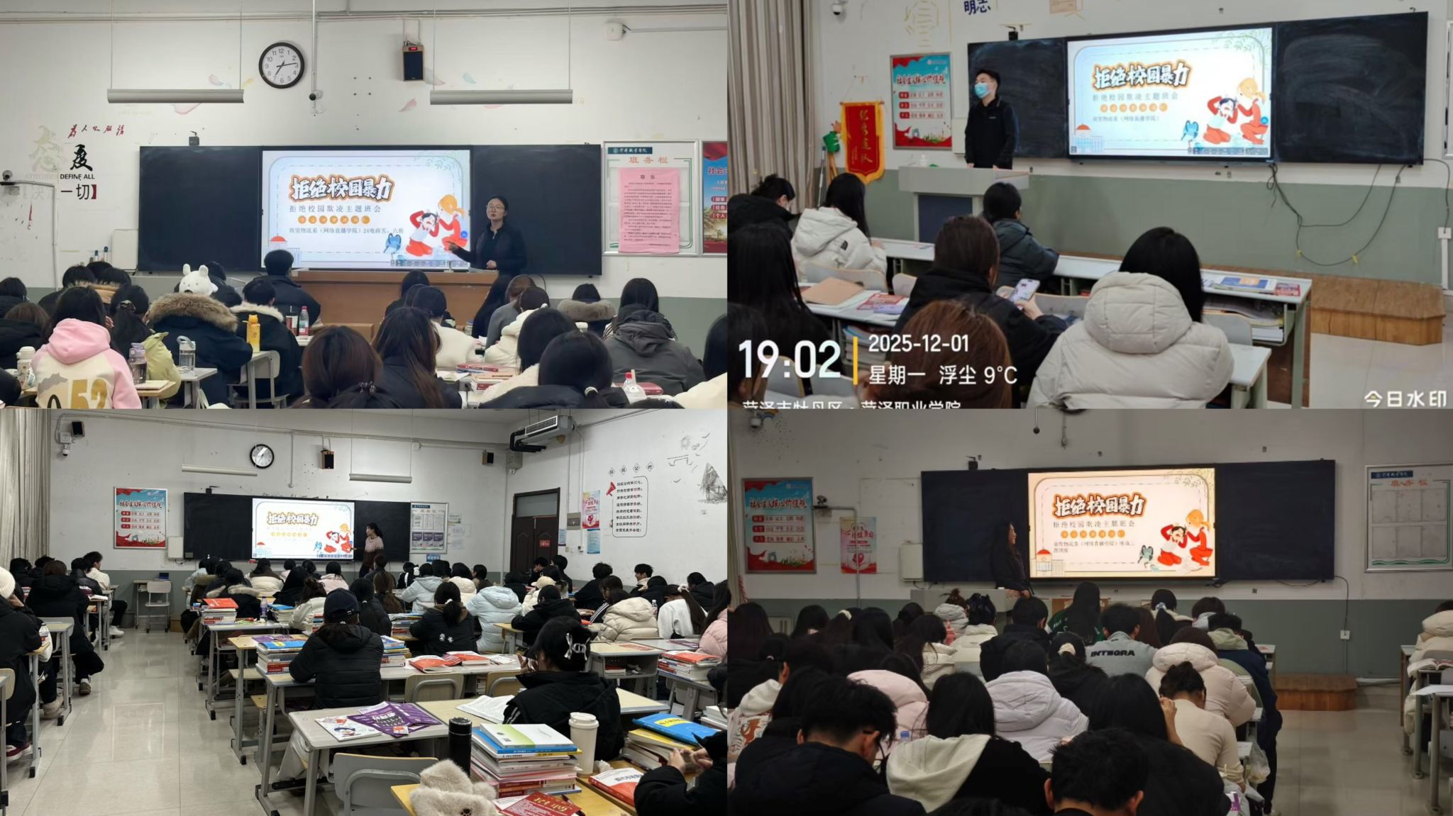 活动伊始,各班级辅导员与班主任精心组织了防欺凌主题班会。班会内容不仅涵盖了校园欺凌的定义、常见形式(包括肢体、语言、关系及网络欺凌等),更结合真实案例,深度剖析了欺凌行为对受害者、实施者乃至旁观者造成的持久伤害。