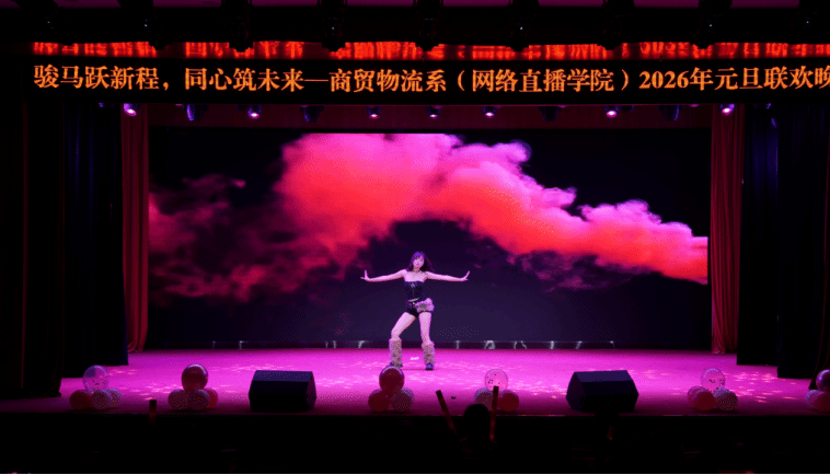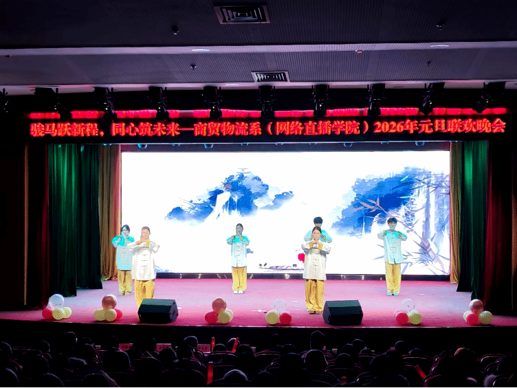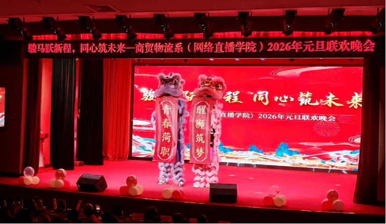 岁聿其莫,新元将启。12月22日晚,awc777万象城娱乐官网商贸物流系2026年元旦联欢晚会如约启幕。本场晚会由商贸物流系团委主办,舞狮舞龙社团、太极拳社团、卡若拉歌舞社团、直播社团、图形图像处理社团协办,直播社团现场直播。师生共计500余人团聚一堂,在欢声笑语中辞旧迎新,共赴一场洋溢着青春气息的视听盛宴。