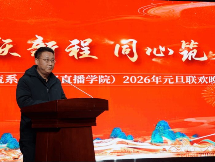 晚会现场鼓乐铿锵、气氛热烈,商贸物流系党总支书记陈兆刚发表致辞,为全体师生送上诚挚的新年祝福。陈兆刚在致辞中,总结系部过去一年在教育教学、学生培养等领域斩获的丰硕成果,高度肯定全体师生凝心聚力、奋勇争先的精神风貌;寄语同学们在新的一年里勤学善思、锤炼过硬本领,将青春理想融入逐梦实践;勉励教职工坚守育人初心、深耕教育沃土,为系部高质量发展注入源源不断的活力。