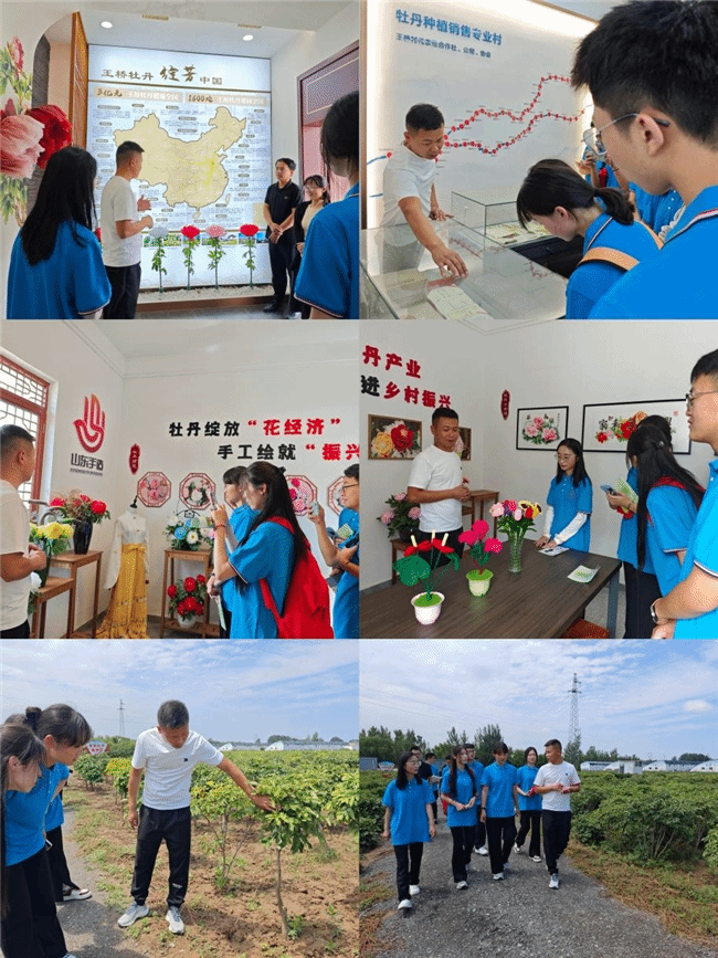 在交流中,实践队员们了解到,王桥村积极开办电商培训班,培育村民主播队伍100余人,蹚出了“互联网+牡丹”的营销新模式。2023年仅芍药鲜切花产量就达到了2000万枝的销售量、销售额达6000万元、带动就业600余人,实现了从牡丹“一枝独秀”到牡丹芍药“双开并蒂”。