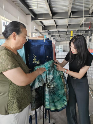 在一家家汉服工坊里,匠人们专注地裁剪、缝制、刺绣,他们手中的汉服不仅是一件服饰,更是承载着中华礼仪文化的艺术品。团队成员与匠人面对面交流,聆听每一件汉服诞生的故事,了解传统汉服制作工艺的复杂与精细,深刻体会到匠人对传统文化的坚守与热爱。通过走访,团队成员对曹县汉服产业的规模、发展现状以及市场需求有了直观而全面的认识,为后续活动开展奠定了坚实基础。