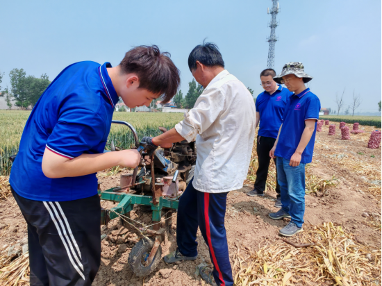 机电工程系“乡约振兴团”聚焦“大蒜之乡”金乡县,深入成武县党集镇于庄村、曹县李双庙村等地,开展了一场“科技助农”的深度调研。学生们走进蒜田,与农户面对面交流种植难题,发现当地存在机械化程度低、收获机效率不足等问题。随后,团队联合玛丽亚农业机械有限公司,针对单行收获机技术痛点,提出多行作业模式改良方案,并参与新型农机设计与田间试验。通过校企联动,推动大蒜产业向智能化、机械化转型,为农户降本增效提供技术支持。