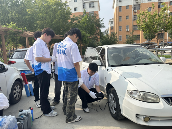 交通工程系“动力先锋”志愿服务队走进基层,为群众提供汽车故障电脑检测、防冻液、刹车油、机油液位检测与加注,汽车胎压及小电瓶电压检测、用车问题答疑、安全提醒等相关服务。将课堂知识转化为惠民实践。