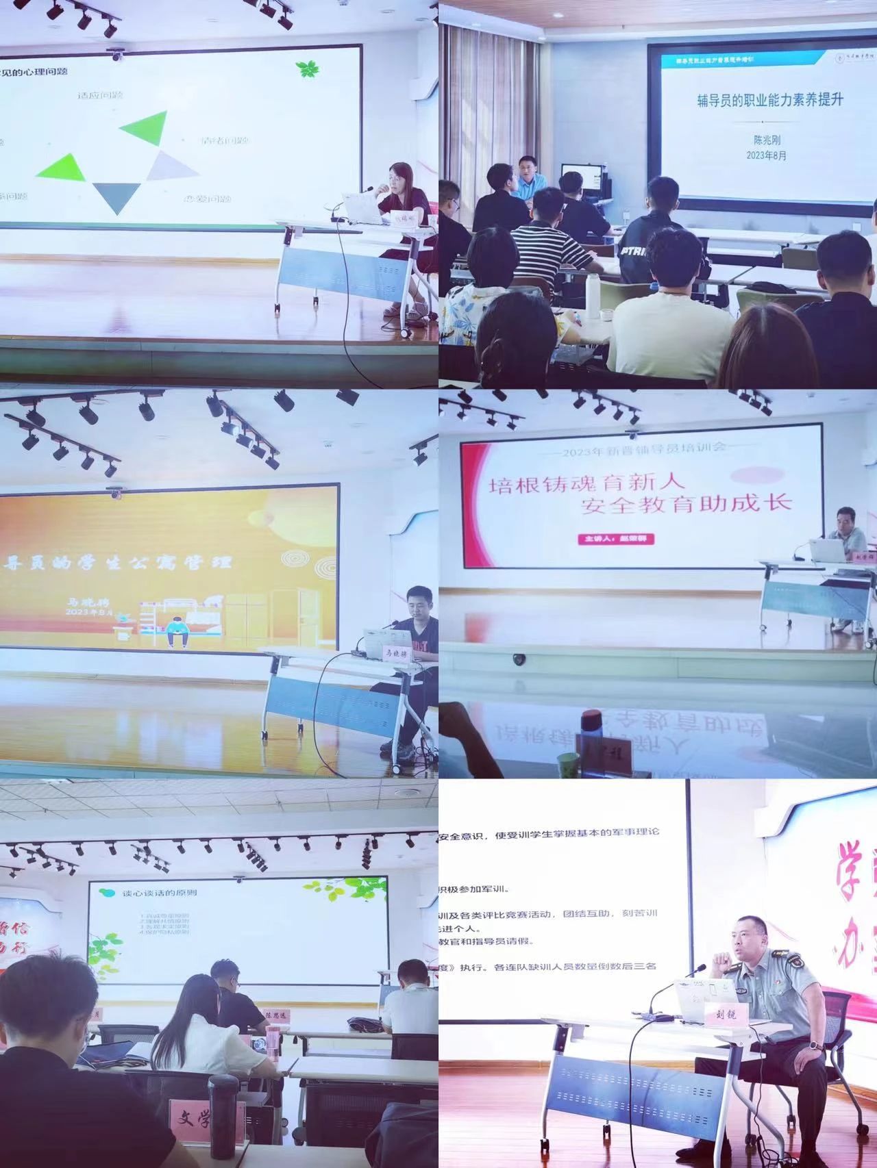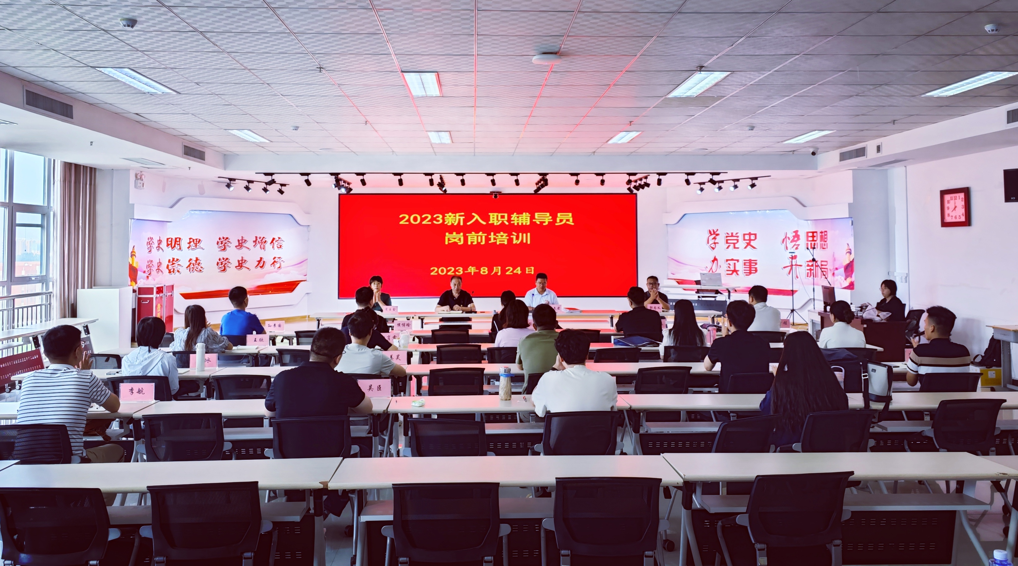 深入学习贯彻习近平新时代中国特色社会主义思想和党的二十大精神,帮助新入职辅导员掌握基本业务知识,8月24日-8月25日,万象城官网在创新创业楼903会议室举办2023年新入职辅导员岗前培训,学校党委委员、副院长王朝景同志、学工部负责人及2023年新入职辅导员参加了培训。