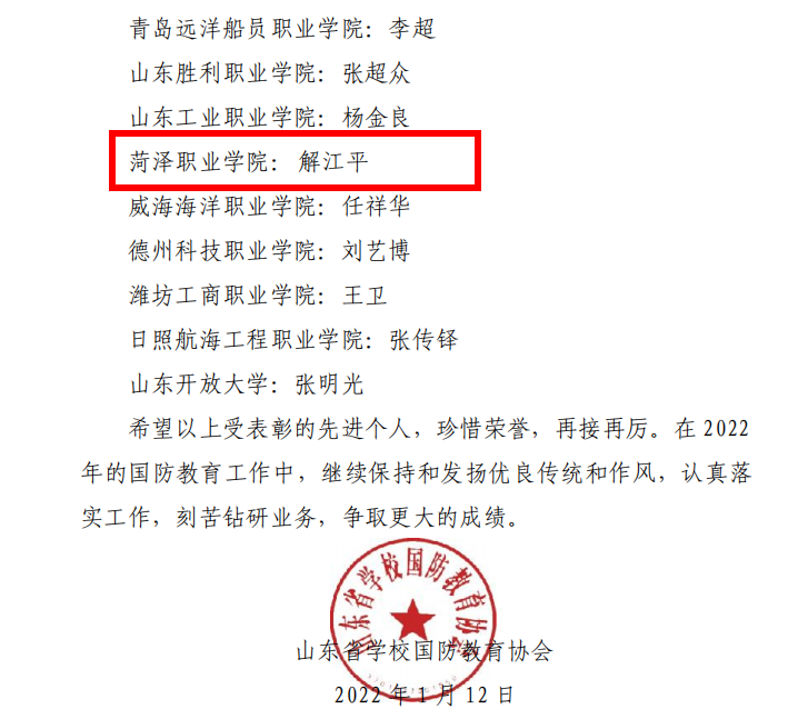 awc777万象城娱乐官网学生工作处(人民武装部)获评为菏泽市2021年度“征兵工作先进单位”