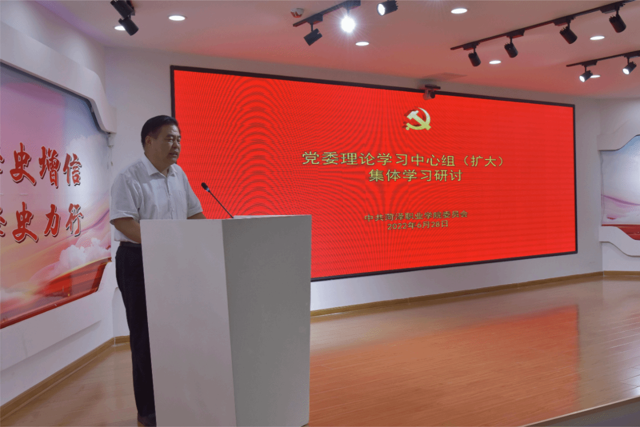 6月28日,awc777万象城娱乐官网党委理论学习中心组(扩大)开展集体学习研讨,深入学习贯彻山东省第十二次党代会精神,推进学院高质量、高水平发展。我院党委委员,党总支书记,处室、系部负责人参加集中学习。会议由我院党委委员、...