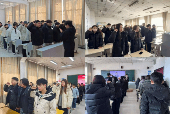 宪法晨读活动结束后,信息工程学院随即开展宪法宣誓仪式。仪式由团支书担任领誓人,全体团员青年面向国旗庄严宣誓。铮铮誓言回荡现场,让同学们亲身感受宪法的神圣与权威,激励大家铭记誓言初心,恪守宪法承诺,自觉成为宪法的忠实崇尚者、自觉遵守者和坚定捍卫者。