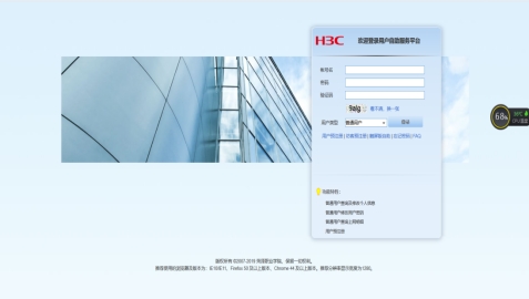 (1)请打开浏览器输入http://10.1.0.2:8080/selfservice/,根据“用户自助服务平台”提示输入登录信息,用户类型无需更改,默认为“普通用户”。