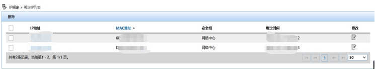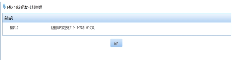 (4)用户可根据“操作结果”提示或返回到“绑定IP列表”,查看当前IP绑定情况,验证相关设备终端是否删除成功。