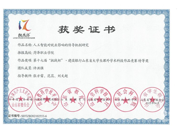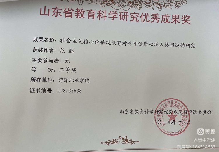 她在做好教学和班级管理工作的同时,她积极指导学生参加比赛,在第十七届“挑战杯”建设银行山东省大学生课外学术科技作品竞赛中,她指导的学生荣获特等奖,她被评为优秀指导教师。在指导学生的同时,她又积极参与科学研究,具有良好的科研素质及较强的科研能力,成果颇丰,得到了学校和社会的广泛认可。她坚持不懈、勤奋耕耘,以第一作者发表国家级学术论文7篇,参与的学术论文6篇;主持科研项目8项,其中省级7项;参与的科研项目6项,其中国家级2项,省级4项。在所研究的科研项目中,有5项荣获山东省教育科学研究优秀成果二等奖。作为一名年轻教师,她深知自己所取得的点滴成绩还远远不够,在科学领域,尚需要不断地探索和创新,不断地总结经验和突破自我,她要成为学生仰慕、同行羡慕的知识之“泉”,去浇灌出学前教育的优秀人才。