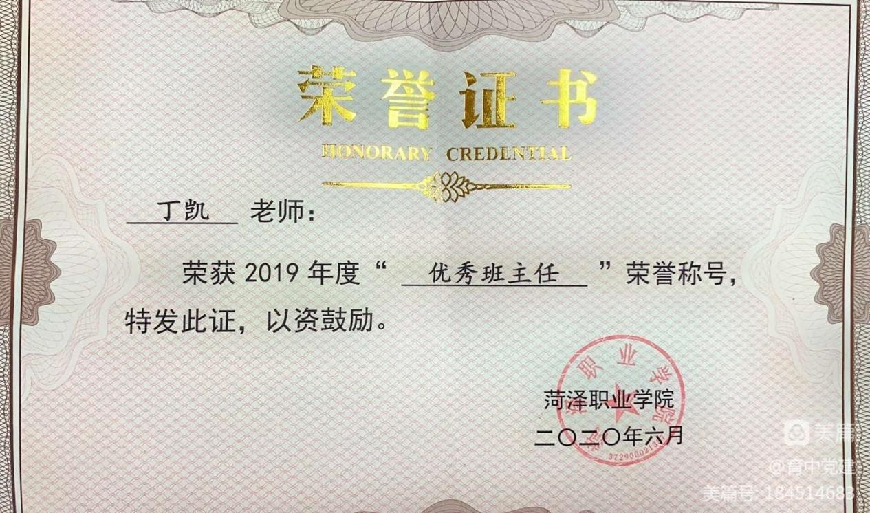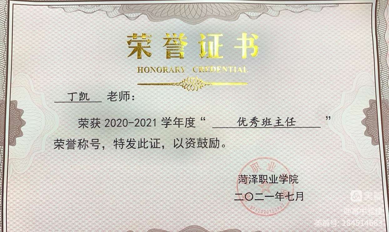 正是因为他对班级管理工作的热爱、对学生亲如兄弟般的关爱,在2019学年度和2020至2021学年度,先后被职业学院评为优秀班主任,受到表彰,也越发赢得学生的爱戴、同事的好评和领导的信任。