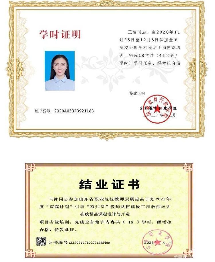 作为 新时代人民教师,她深知教师要有不断学习适应教育新形势的能力,所以,她认真钻研教材、不断学习新知识,积极践行终身学习的职业标准,注重提高自我教学和科研水平。在工作之余积极参加各种学习培训,如:《1+X空中乘务职业技能》培训、《第一期全国职业院校教师信息化能力提升》培训、《高校心理危机预防干预网络》培训、《在线精品课程设计与开发》培训、《创新创业师资》培训等。在学习过程中,不断提高自身素养,加强自身业务能力、综合能力的提升。她就是这样,执着地走在不断学习、不断成长的路上。