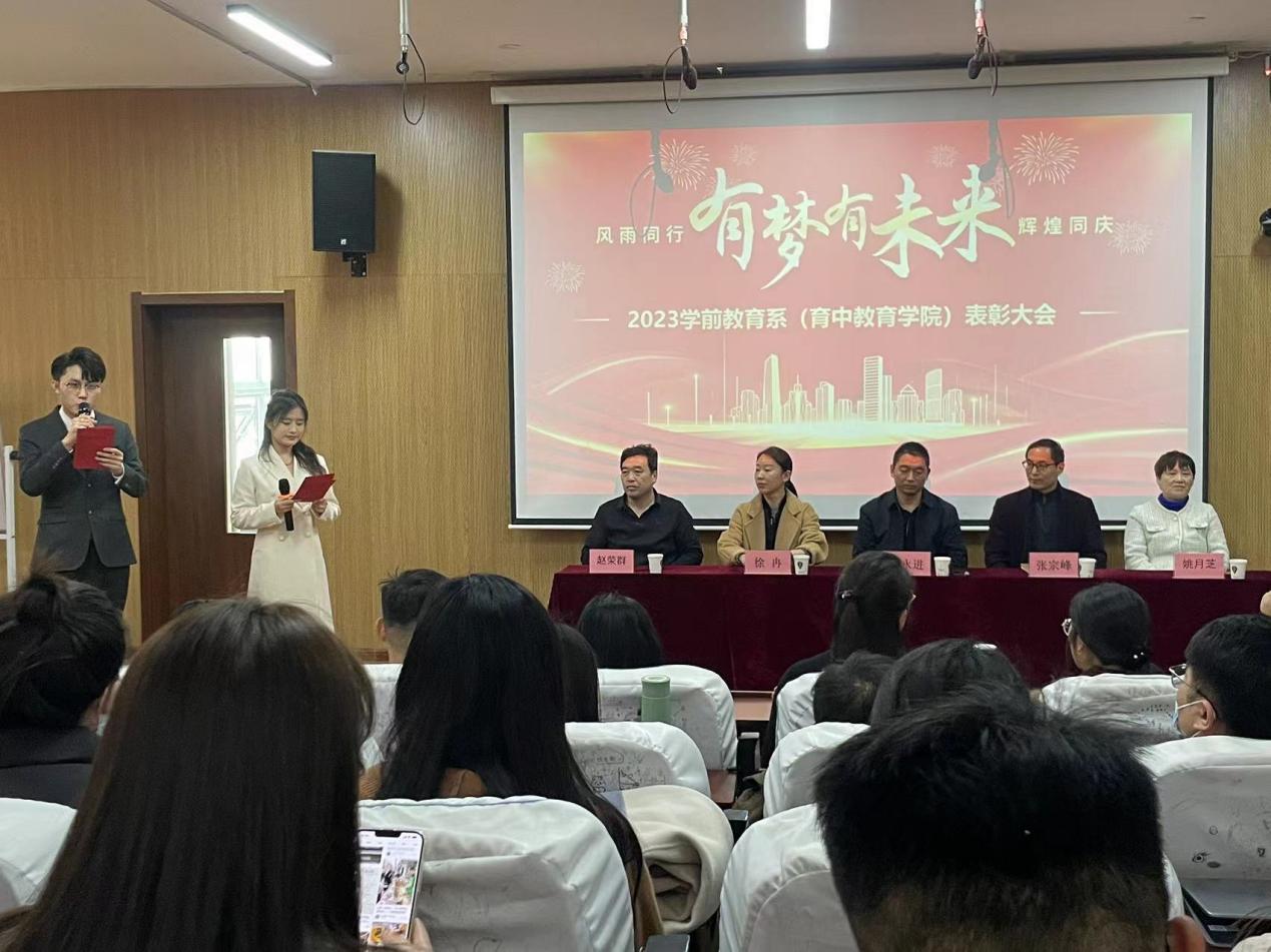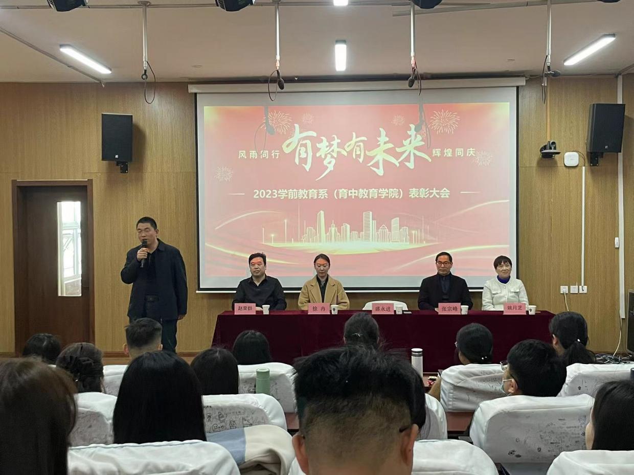 为落实立德树人的根本任务,树立优秀榜样,激励同学锐意进取,营造积极向上的学习气氛,3月14日,学前教育系(育中教育学院)在awc777万象城娱乐官网5-2阶梯教室举办2023年度学生表彰大会,大会由系综合办公室主办,学工办、教学办协同配合,系部全体教师及学生代表参加,学前教育系(育中教育学院)党总支书记盛永进主持。