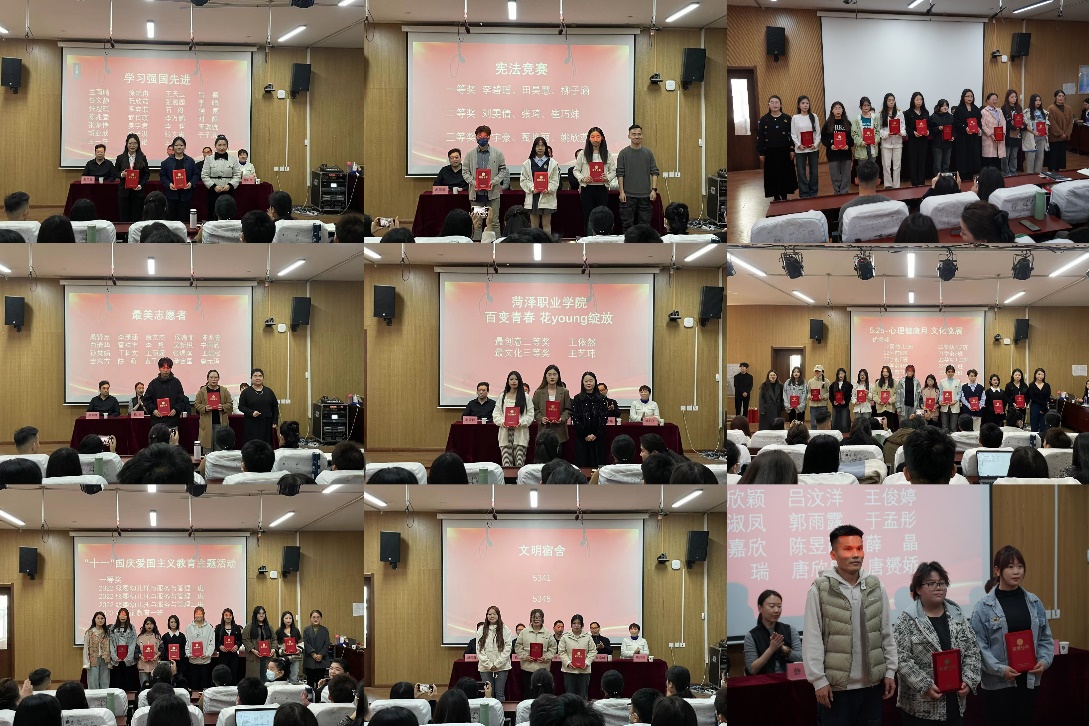随后,颁奖环节正式开启。本次表彰大会包括了励志奖学金、国家奖学金、最美志愿者、幼儿教育技能比赛等共计24个奖项的表彰,涵盖了学生德智体美劳等多方面全面发展,同时每一个奖项都代表着一份荣誉和一份责任,也是对个人或团队在工作中的杰出表现、成就或贡献给予正式的认可和赞誉。