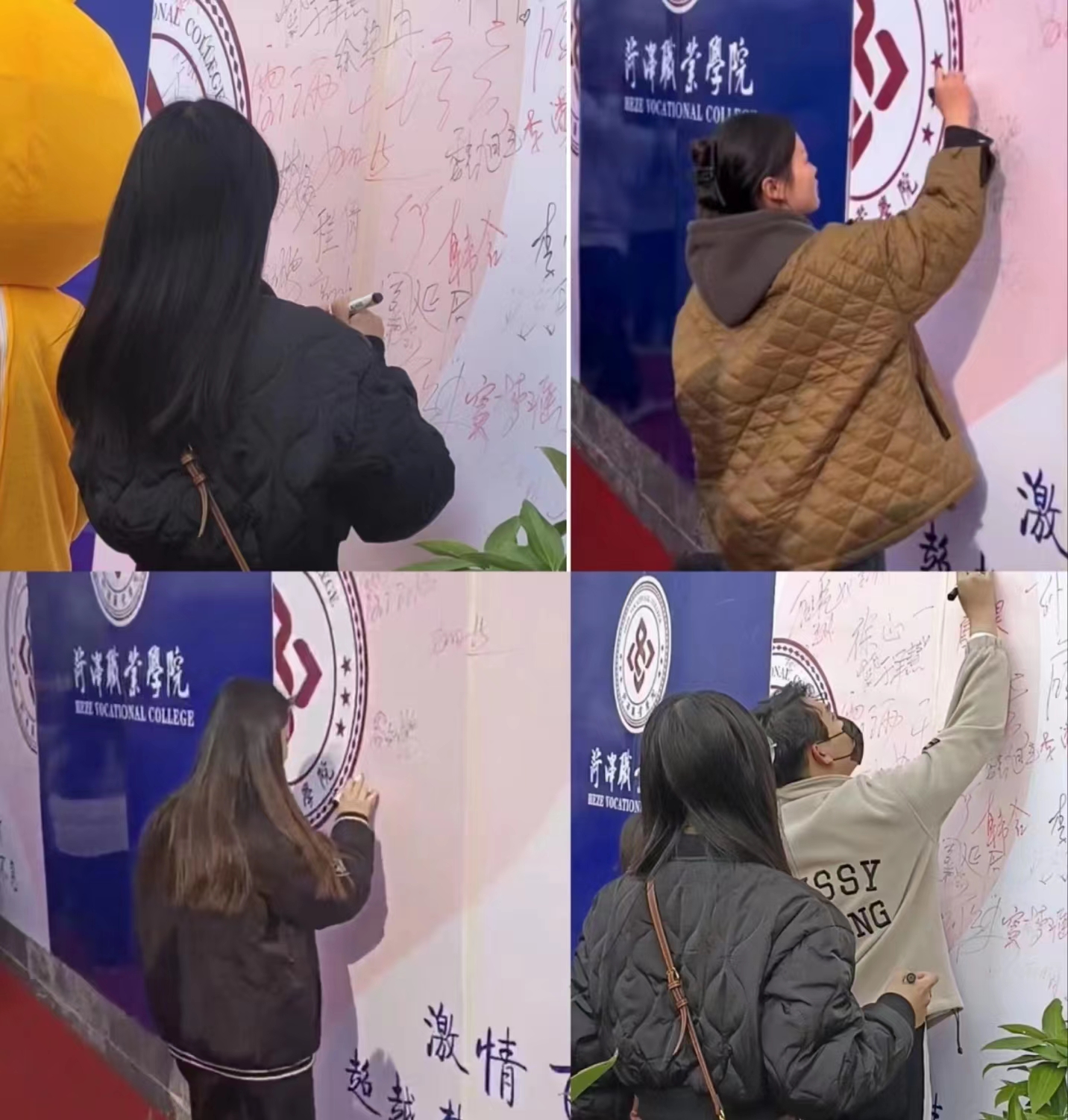 2023年2月22日下午15:00整,学前教育系(育中教育学院)全体师生在5号教学楼,举办别开生面的开学签字仪式,学生们看到红毯绿廊装饰的“我爱菏职,学院在心中”签字墙,兴奋地书写个人开学寄语,寄托自己新年、新学期的心愿;“育育”“中中”是这次活动的吉祥物,一起娱乐,一起合影,记录属于大学新学期的美好回忆;每个班级配上一盆生机勃勃的“天堂鸟“绿植,给班级增添一抹春日的绿色。创意的布置,热烈的氛围,引起学生打卡拍照的热潮,更增添了对学校的热爱。