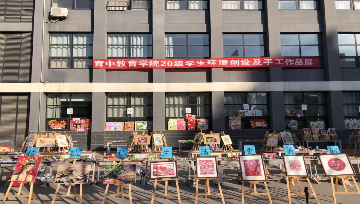 为培养学生创新意识和动手能力,展现育中学子积极向上的精神风貌,促进育中教育学院的发展,让更多人了解和感受环创艺术的魅力,2021年12月2日,育中教育学院党总支在五号教学楼前,举办了首届“2020级学生环创及手工作品展暨幼儿园环创产品推介展示会”,几百幅作品参展。这次活动的主题是“育中环创产品,幼儿园的资源库”;目标是“让学生的作品成为第一生产力”;目的是“用智能研发为幼儿园服务,让作品成为产品”。