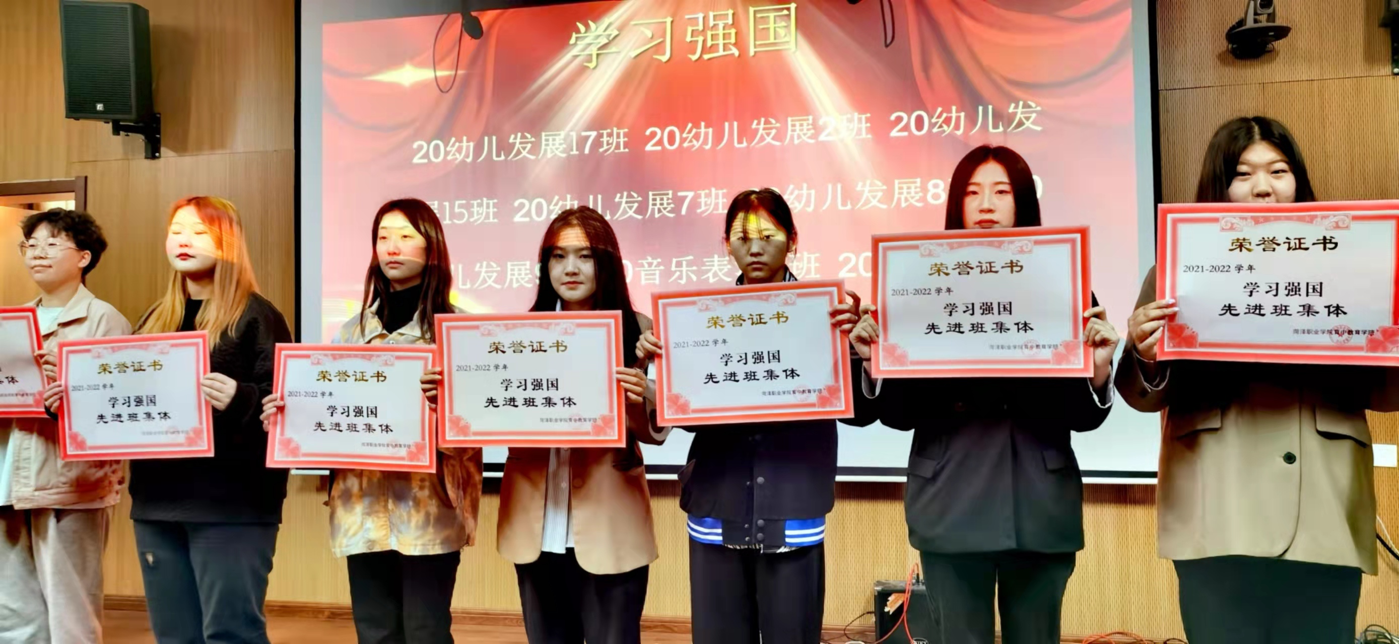 为了烘托气氛,组织者在颁奖典礼上精心准备了文艺节目,来自2020级音表、幼儿发展部分班级,2021级学前教育班级学生精彩的演出把表彰大会一次次推向高潮。