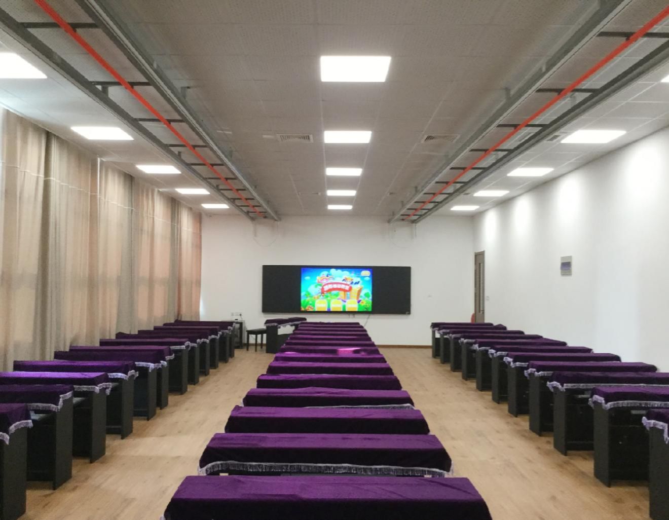 该实训室使用面积141平方米,投资钢琴122台,外部监听音箱、多媒体电教黑板、多媒体电钢琴控制演示系统1套;该实训室可同时容纳120名学生进行键盘、音乐欣赏、音乐素质训练等课程的教学。可面向社会开展幼儿园教师培训。