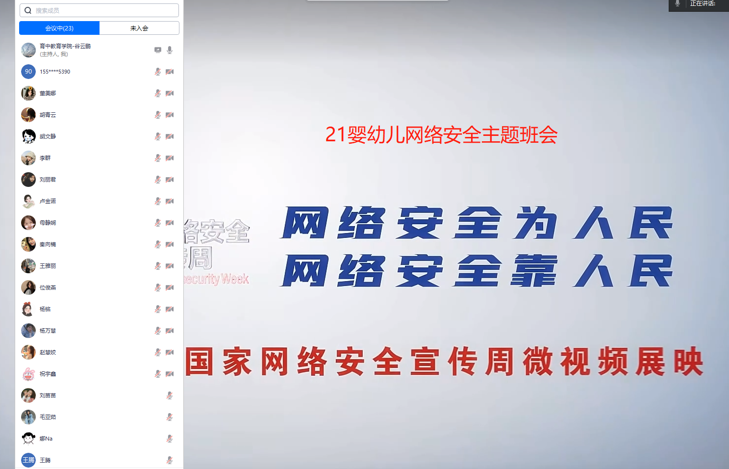 共筑网络安全,守护和谐校园 学前教育系(育中教育学院)开展网络安全主题班会 为深入学习宣传贯彻党的二十大精神、学习宣传习近平总书记关于网络强国的重要思想,宣传贯彻习近平总书记对网络安全工作“四个坚持”重要指示精神,...